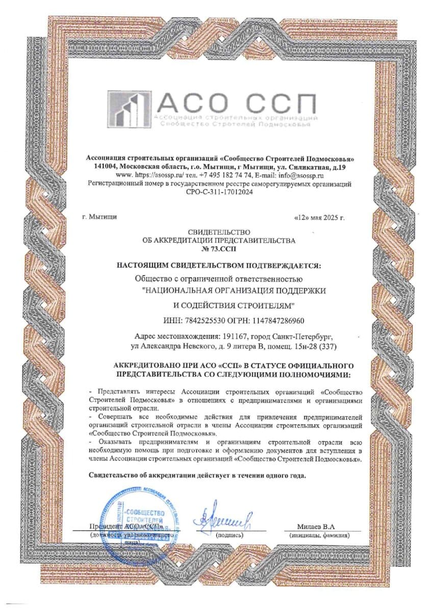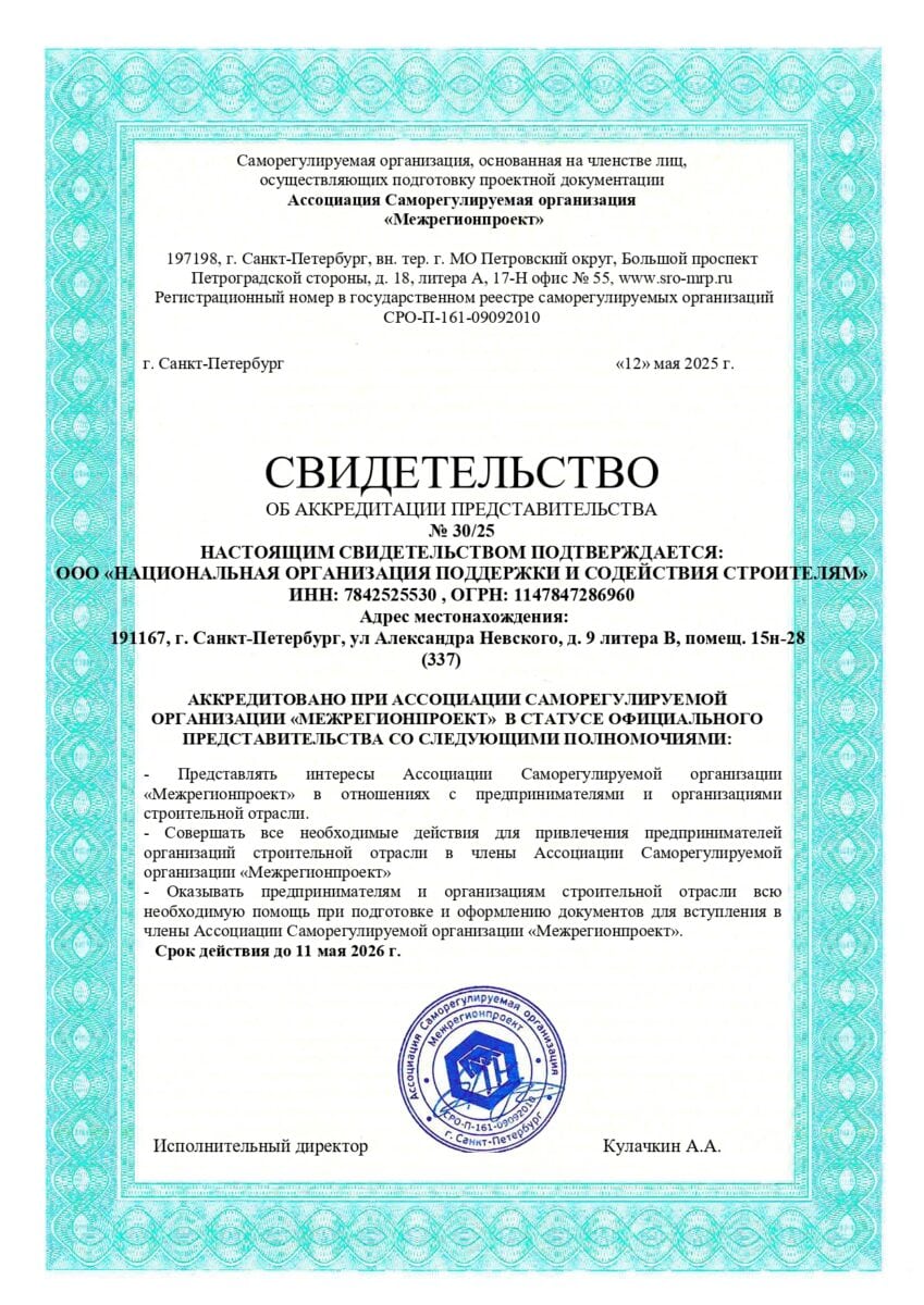 Было принято решение провести переговоры на предмет помощи в оказании услуг по вступлению в СРО. Вступая в СРО через аккредитованную организацию «НОПСС», компания получает сертификат ИСО 9001 в подарок.